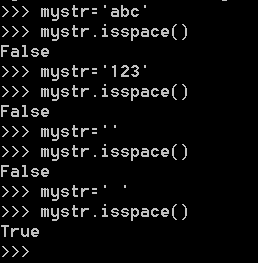 作用:如果mystr中只包含空格,则返回True,否则返回False。