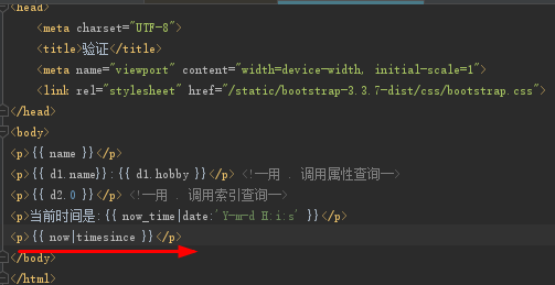 - 过滤器参数包含空格的话,必须用引号包裹起来。比如使用逗号和空格去连接一个列表中的元素,如:{{ list|join:', ' }}