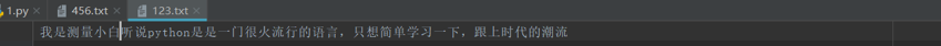 3 file3.write('听说python是是一门很火流行的语言,只想简单学习一下,跟上时代的潮流')