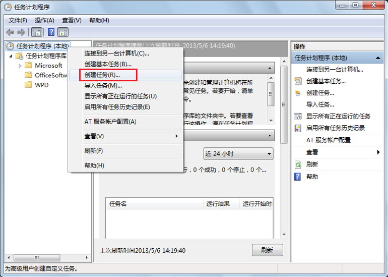以Windows 7为例,打开“管理工具”中的“任务计划程序”。创建一个任务。