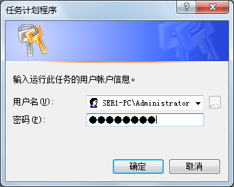在“新建任务”对话窗口点“确定”,这时候会要求输入运行该任务的帐号所对应的密码。