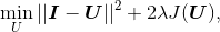 在 Chambolle 提出的 ROF 模型里,目标函数为寻找降噪后的图像 U,使下式最小: