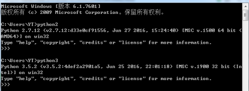 首先当然是安装你需要的两个不同版本的python,这里我安装的是2.7和3.5的,两个版本安装顺序无所谓。