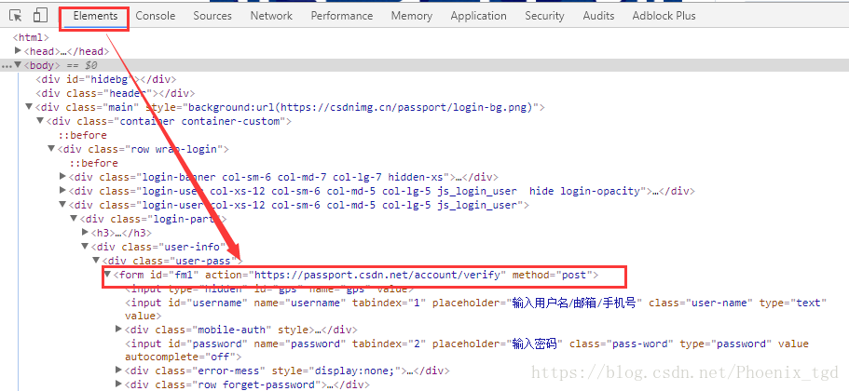 在这里我们需要去寻找post_url。在登录界面中点击鼠标右键,得到以下界面,找到提交用户名和密码的form表单,其中的action值即为post_url