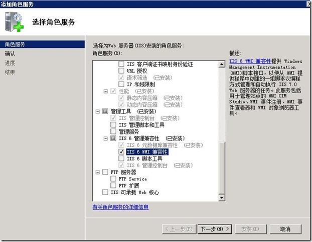 CAS/HUB需要的先决条件为安装IIS 6 WMI compatibility组件。