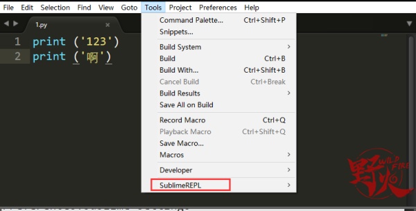 安装完成之后点击Tools,出现SublimeREPL,表示安装成功。