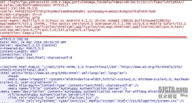 下面几个步骤就是 接入设备 到 auth-server 上的认证过程,因本系列主要分析 wifidog 源码,这里只截取了 接入设备 与 auth-server 之间的通信报文: