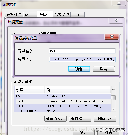 将“F:\Tesseract-OCR”添加到环境变量中。如图: