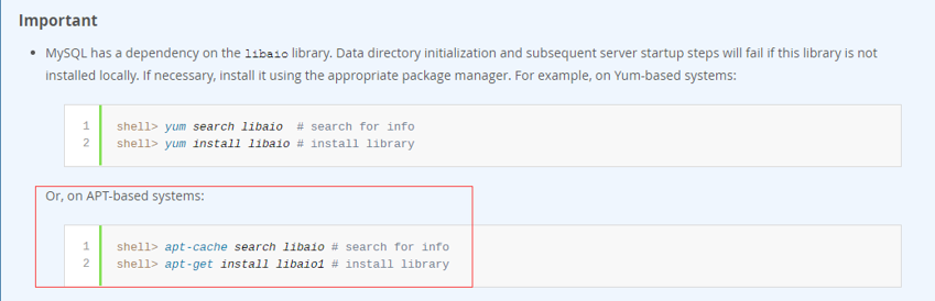 /usr/local/mysql/bin/mysqld: error while loading shared libraries: libaio.so.1: cannot open shared object file: No such file or directory