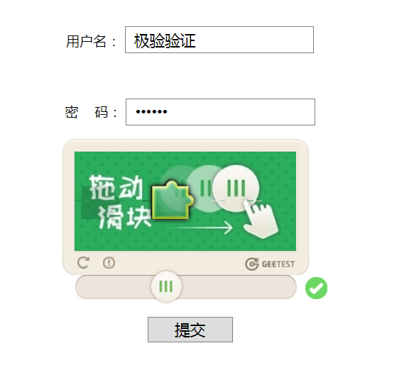 <h2>嵌入式Demo,使用表单形式提交二次验证所需的验证结果值</h2>