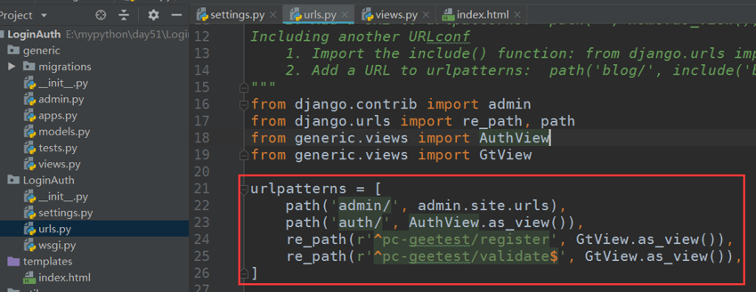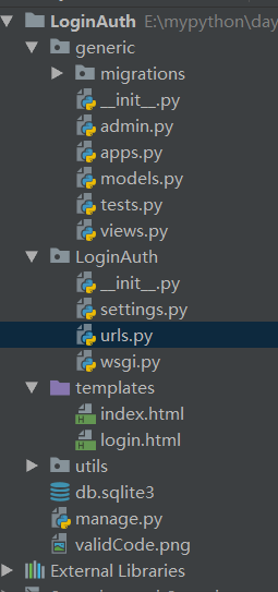 这里就直接给一个demo作为讲解,创建一个简单的django项目,项目名为LoginAuth,app名为generic