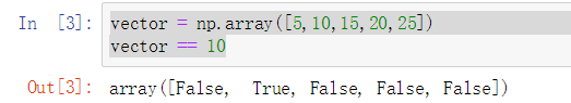vector = np.array([5,10,15,20,25]) index = (vector == 10) print (index) print (vector[index])