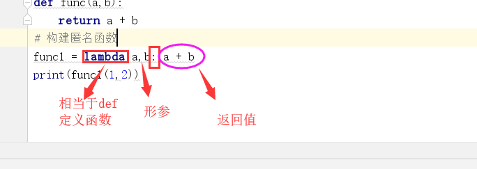 lambda 是定义匿名函数的关键字,相当于函数的def.