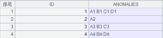 我们的目的是将ANOMOALIES字段按空格拆分为多个字符串,每个字符串和原ID字段形成新的记录。