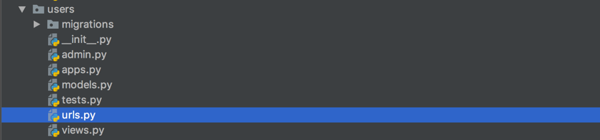 from django.conf.urls import url, include from django.contrib import admin urlpatterns = [ url(r'^admin/', admin.site.urls), # django默认包含的 # 添加 url(r'^users/', include('users.urls')), ]